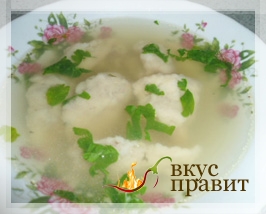 5. Готовые клецки вынуть из воды шумовкой, выложить тарелки, залить куриным бульоном и посыпать зеленью петрушки.