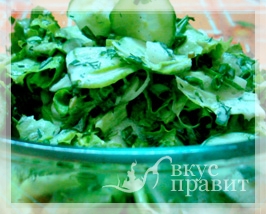 Листья салата нарезать полосками, яйца мелко порубить, все перемешать, добавить сок лимона, соль, салат приправить сметаной, посыпать зеленью укропа.